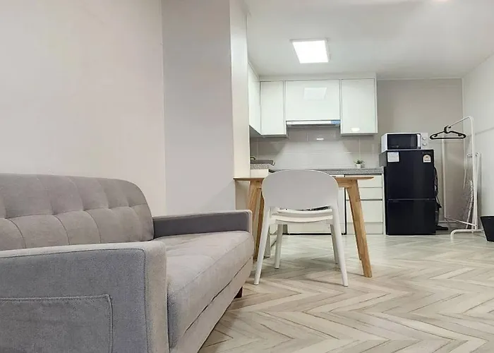 A Kjongbokkung 6 km-re, míg a Koreai Háborús Emlékmű hozzávetőlegesen 7 km-re fekszik. Az 1 hálószobás apartman Szöul Hongde körzetében található. A Gyeongui Line Parkerdő néhány saroknyira helyezkedik el az ingatlantól.